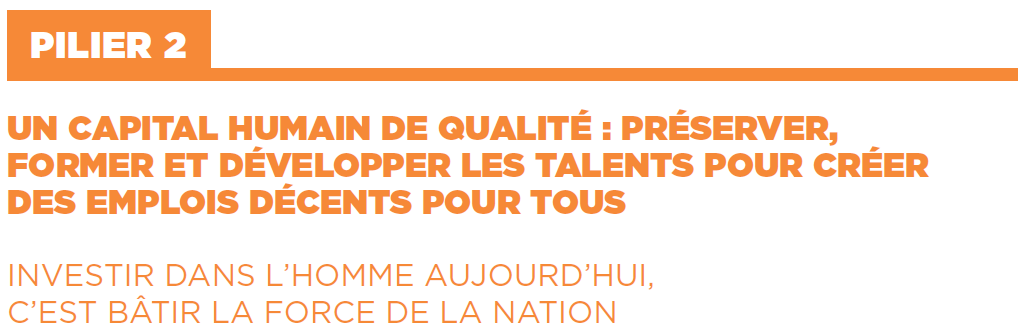 - Renforcer les capacités en formation technique et qualifiante et mettre le système éducatif en adéquation avec les besoins de l’économie
