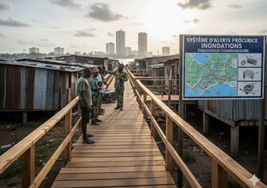 Exemples du cours : Contexte ivoirien (2 min)Exemple 1 (Aléa et Vulnérabilité) : À Abidjan, les quartiers informels construits sur des pentes instables ou des berges de lagunes sont fortement exposés aux glissements de terrain et aux inondations lors des fortes pluies. L'aléa est la pluie intense, et la vulnérabilité est liée à la nature des constructions et à leur localisation (Birkmann et al., 2013).Exemple 2 (Cycle de Gestion) :