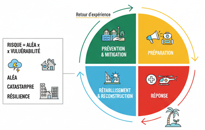 I. Définir les concepts clés (risque, aléa, vulnérabilité, catastrophe, résilience) et les phases du cycle de gestion des risques